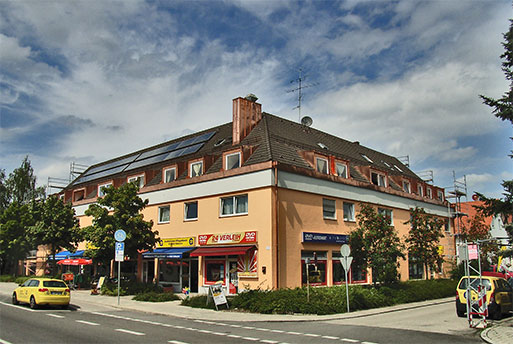 Ansicht n. Fassadeninstandsetzung + Dachsanierung u. mit Solarthermiekollektoren