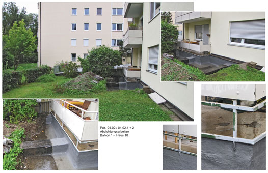 Baustellenfotos Instandsetzung Abdichtung m. Flüssigkunststoff inkl. Gewebeeinlage