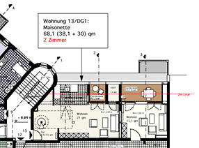 Dachaufsicht -> alle Dachwohnungen m. eigener Terrasse